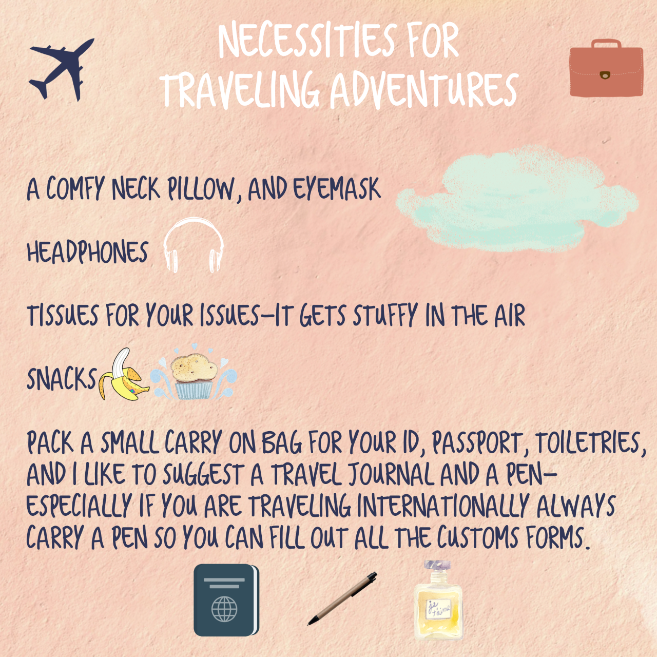 Always have the following with you in your carry on bag: